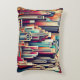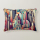 Unique pillow with a cityscape in bold colors and art deco architecture.