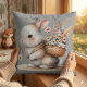 Cojín Decorativo Arte acuarela de conejito lindo con flores