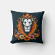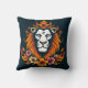 Cabeza de león estilizada en el centro, adornada con una corona. La melena del león está ilustrada con colores naranja y amarillo vibrantes, que se asemejan a llamas.