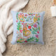 Cojín Decorativo Arte Popular Animales Florales Amigos Pálidos Azul