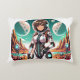 Astronauta femenina en un planeta rojo cerca de robots y lunas. Un diseño muy adecuado para la decoración, para que parezca más estético.