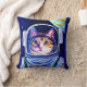 Almohada en un astronauta lindo ginger cat en un espacio, contra el espacio ultraterrestre, con la Tierra en el fondo