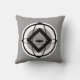 Esta almohada de tiro presenta un diseño geométrico abstracto basado en un tema astronómico. Un solo diamante es superpuesto a un patrón de esferas y elipses en tonos de gris negro, blanco y plateado. En el centro hay un sol negro estilizado.