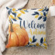 Invite a touch of calm and celebration into your space with this reversible fall throw pillow. One side features a watercolor pumpkin surrounded by golden and blue leaves framing the message “Welcome Autumn.” Flip it over to reveal a joyful burst of orange pumpkins, playful dots, and scattered leaves on a crisp white background. This design captures both the graceful charm and cheerful spirit of the harvest season — a perfect accent for cozy living rooms, nurseries, or seasonal storefront displays.