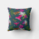 Bonito Cojín decorativo de impresión de flores tropicales Hummingbird. Hermosa huella gráfica de colibríes rosa y morado volando y alimentándose en flores tropicales y hojas de palma. Sobre un fondo azul verde azulado oscuro. Ideal para iluminar una habitación sencilla. Otros colores disponibles en mi tienda.