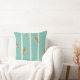 Una almohada con un ilustracion de abedules y pájaros naranjas sentados en sus ramas. Fondo de color verde retro.