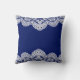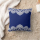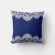 Un fondo azul real brillante contrasta maravillosamente con un intrincado borde de encaje blanco en esta imagen, haciendo una bonita almohada que alegrará cualquier habitación. Añade tu propio texto personalizado, si quieres. *Nota: la imagen está impresa en la superficie y no contiene ningún encaje.* **Creada con obras de arte compradas en Digital Design Boutique en http://digitaldesignboutique.com .