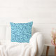 Una almohada de estilo oceánico con muchos peces azules de diferentes formas y tamaños.