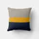 Cojín Decorativo Azul oscuro, amarillo, rayado gris texturado