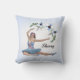 Hermosa bailarina de tutu azul y zapatillas posadas en posición de estar.