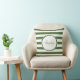 Una almohada casual de rayas anchas y verdes arroja almohada. Personalice este modelo de moda añadiendo su nombre y monogramado inicial. Este moderno diseño de monograma forma parte de la colección de colores de verano Treetop Stripes Bedroom Decor Summer Color Collection.