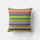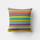 Esta almohada de tiro tiene un diseño de rayas horizontales en tonos azules, verdes, marrones, morados, rojos, amarillos, naranjas y rosas.