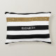 Personalice esta moderna almohada de acento horizontal de rayas blancas y negras con un lujoso estilo purpurina de oro añadiendo el nombre de cualquier chica. Esta estampada de rayas gráficas de moda es perfecta para la moda de moda. Imagen plana impresa, NO purpurina real.