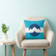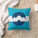 Una almohada con un diseño con la bandera de Ogden, Utah. Una bandera azul y blanca con picos de montaña en el centro
