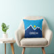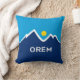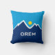 Almohada con un diseño con la bandera de Orem, Utah. Una bandera azul, blanca y amarilla con picos de montaña y el sol en el centro
