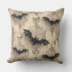 This Gothic throw pillow has a design of bats and spider webs on it.