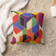 Esta almohada de tiro tiene un diseño Bauhaus de hexágonos superpuestos de muchos colores.