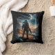 A lone explorer stands on an alien landscape beneath a ringed planet and a mysterious cosmic signal piercing the night sky.