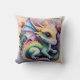 La almohada de hilado presenta un colorido dragón de bebé sobre un fondo floral. Una adorable fantasía de arte animal en rosa, verde, azul, morado y amarillo.
