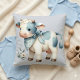 Cojín Decorativo Bebé Vaca Cuadros Azules Estética Granja Pastel