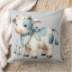 Cojín Decorativo Bebé Vaca de Gingham Azul Estética Pastel de Granj