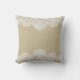 El fondo beige contrasta con la imagen de un intrincado borde de encaje blanco, haciendo una bonita almohada que le dará un toque de elegancia a cualquier habitación. Añade tu propio texto personalizado, si quieres. *Nota: la imagen está impresa en la superficie y no contiene ningún encaje.* **Creada con obras de arte compradas en Digital Design Boutique en http://digitaldesignboutique.com .