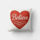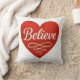 Pretty minimalist design of a red heart with the word "Believe" in white. This encouraging throw pillow will bring joy to you and others who visit or, bless someone you know with this inspirational gift for their home. Multiple mini hearts on reverse.