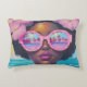 un retrato impresionante y vibrante de una mujer de diseño con gafas de sol rosas gigantes que reflejan una playa tropical de ensueño. Rodeada de suaves flores de hibisco y con un fondo oceánico turquesa, esta obra de arte captura la esencia del verano, la belleza y el empoderamiento. Ideal para los amantes de la playa, los coleccionistas de arte vanguardista y la decoración tropical.