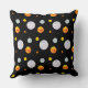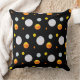 Hermosa almohada de tiro con hermosos puntos de polka de moda sobre fondo negro. Los hermosos puntos de la polka se parecen a los planetas de un universo. Diseño tanto para adultos como para estudiantes o niños.