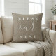 Moderna casa de campo Bendice nuestra almohada de lanzamiento de nido. Tenga en cuenta que la sutil textura de fondo de la burpón forma parte del diseño impreso y que el producto no está hecho de tela burlap real. Haga clic en el botón Personalizar para añadir su propio texto y seleccionar entre todos nuestros estilos de almohada para crear su propio diseño único de un tipo!