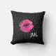 Una almohada rosa y negra a la moda con un beso en vivo rosa con un fondo de leopardo negro. Personalice este diseño ondulado añadiendo sus iniciales de monograma.