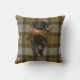 Black Labrador Retriever gundog and Pheasant on tweed / tartan cushion. Shooting / hunting scene with a black lab gundog carrying a Pheasant. Cartridge shell top detail around the edge of the throw cushion. Perfect for those who are into hunting, shooting as well as black Labrador Retriever owners and handlers.