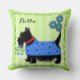 Cojín Decorativo Black Scottie Terrier Dog Name Personalized Green