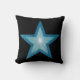 Diseño moderno con una estrella "brillante" azul y blanco sobre un fondo negro, tu elección de texto en la parte posterior. Tira una almohada con un diseño de personalizable para que puedas personalizar con tu propio texto, imágenes e ideas. Esta es una imagen de arte digital creada con fotografías originales y técnicas digitales e impresa en tela, no brilla ni contiene chispas reales.