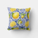 Cojín Decorativo Blue White Lemon Tile Pattern Mediterranean Citrus