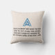 A detailed blueprint-style illustration of the letter "A" is presented against a vibrant blue background. The letter itself is rendered in white, with intricate details and precise measurements indicated by thin white lines. The back of the pillow includes a blue outline of the letter A set against a textured light beige background with a 4-line poem about the letter below.