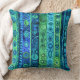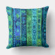 Cojín Decorativo Boho artístico verde azul a rayas