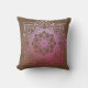 Buho flor mandala en color rosa oscuro sobre fondo marrón.