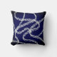 This bold accent designer throw pillow has white painted serpentine lines on dark blue in this abstract art design for modern homedecor. Art copyright Ann Powell all rights reserved.
