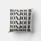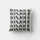 Elegante almohada de tiro con expresión francesa Bonjour en tipografía moderna en blanco y negro.