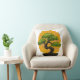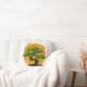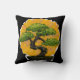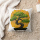 Un hermoso ilustracion de un bonsai que se sienta en una olla negra contra un fondo circular amarillo brillante.