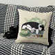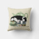 Un lindo gato blanco y negro durmiendo en un montón de libros con una tetera verde y una taza de té.