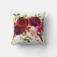 Cojín decorativo de estilo bohemio con ilustracion acuarela de burdeos, Marsala, peonías rojas y rosas y rosas con acento de plumas. También están disponibles los elementos coincidentes.