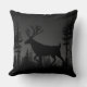 Una almohada decorativa con la silueta negra de un gran ciervo de astas en un bosque tranquilo de pinos, con varios fondos de colores. Vea todos en la Colección.