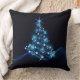 Cojín Decorativo Brillo azul de estrellas en árbol de Navidad oscur