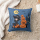 Cojín Decorativo Bruja de Halloween, gato negro y calabazas