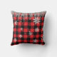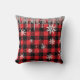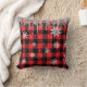 Esta almohada está en una manta de búfalo con copos de nieve a través de ella por ambos lados.