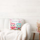 Almohada de niño y niña búhos y flores en rosa, azul y blanco. La parte delantera dice "Todo lo que necesitas es amor". La parte trasera dice "el amor es todo lo que necesitas". Arte original KL Stock.