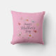 Happy Mother's Day cushion with floral and butterfly pattern on a plain pink background.