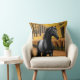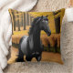 Cojín Decorativo Caballo negro en un sendero panorámico otoñal